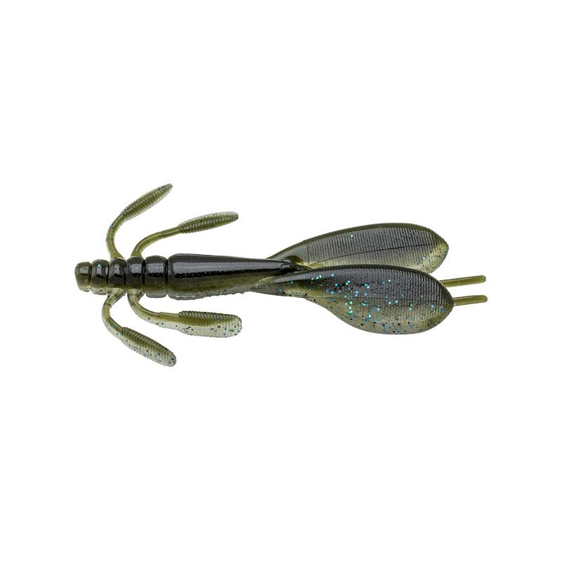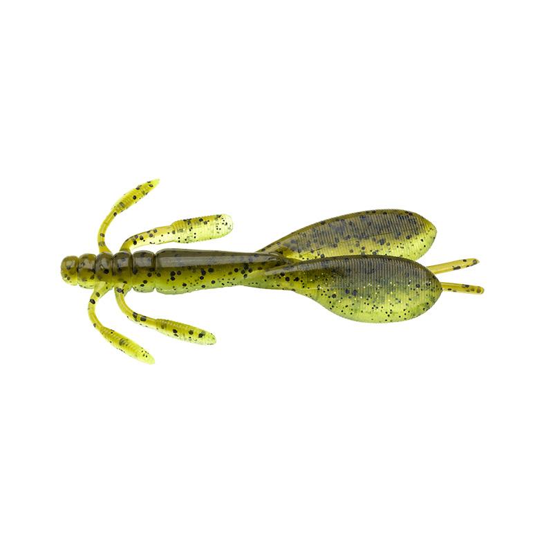 シルエットは小さめのザリガニにあわせた食わせサイズながら、アピール不足を感じさせないボリューム感に仕上げています。アクション時にはツインパドルを上下に振り、逆付けレッグがわずかな水流にも反応してパドル側へなびきます。