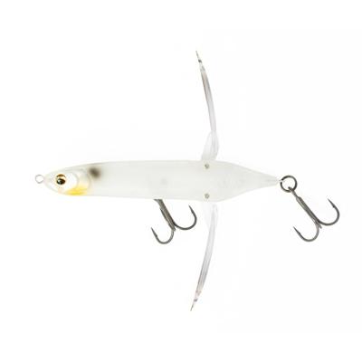 強化プラチック製の透明ウィングを装備したそのシルエットはまさに小鮎、 ワカサギなどの小型ベイトフィッシュそのもの。