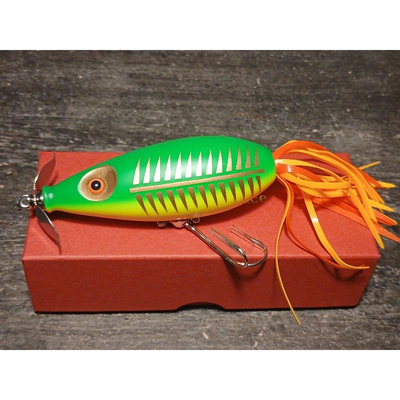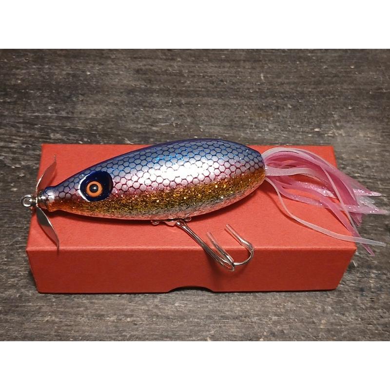 基本的なテーブルターンはもちろん、直線的なリトリーブではプロペラが回転し、バズベイトの様に使っても頂けます。首振りもただ巻きもOKであるため、ピンスポットでの粘り強い誘いから広範囲のサーチまで、一本で幅広い状況に対応します。