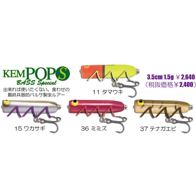 管釣り用にもケムポップ(S)がありますが、こちらはバス用に長いヒートンを使用して1フックに変更、フックも強いものになっています。
