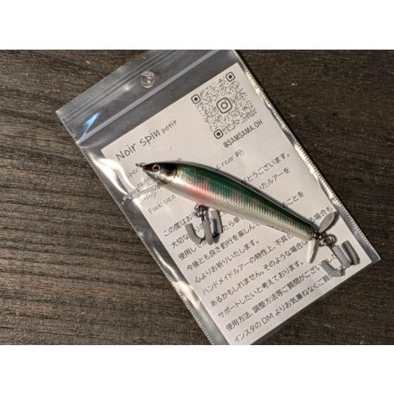 ノワールの「ノワールスピンプチ」。塗装が艶かしいバルサルアーです。是非気になる方は購入してください。