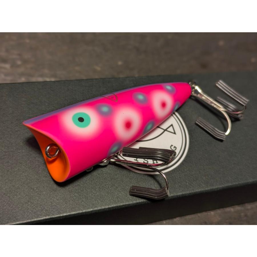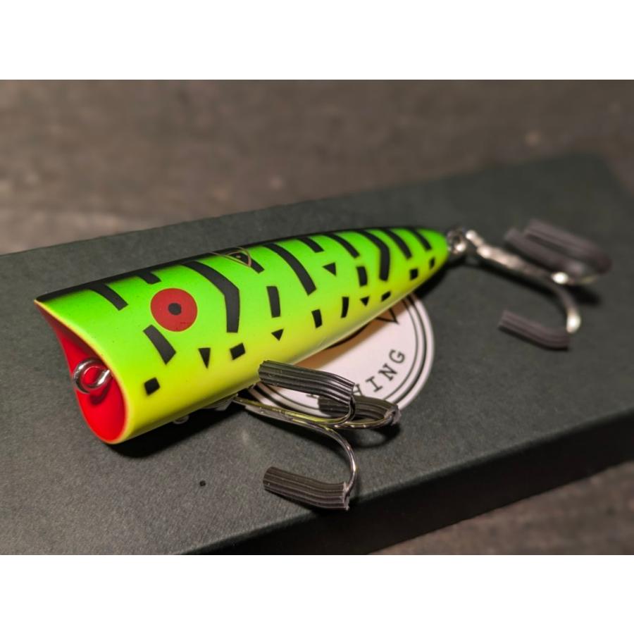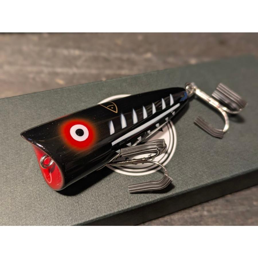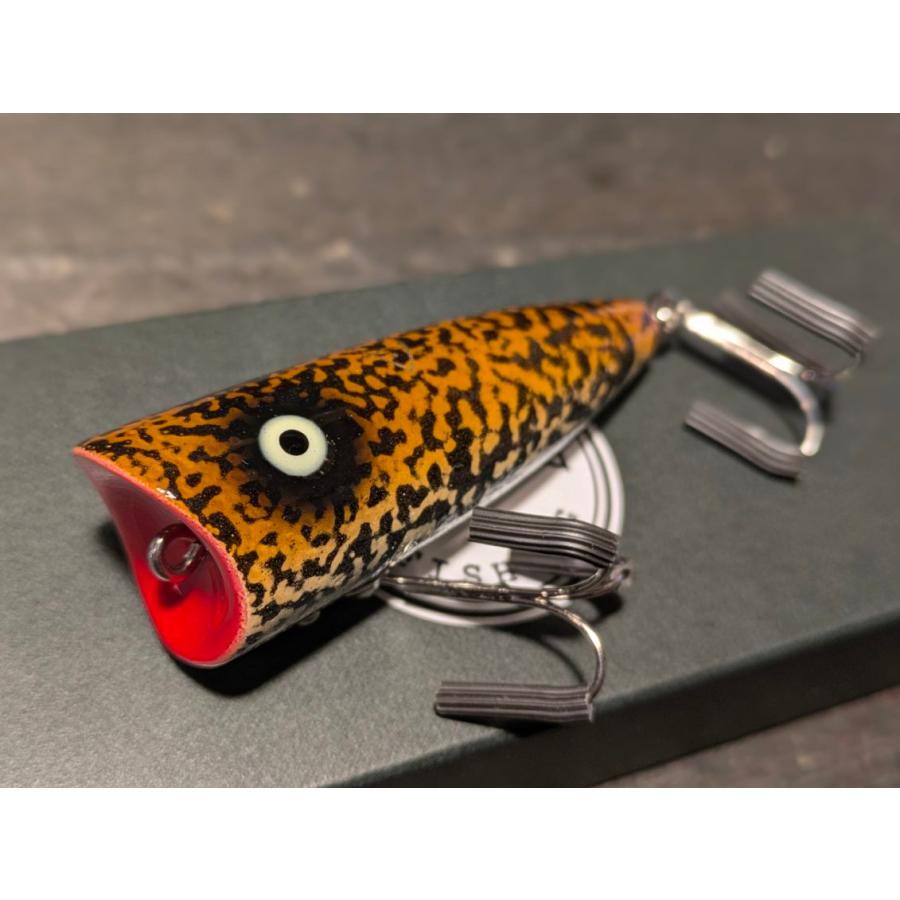 小柄なボディから繰り出すポップ&スプラッシュ。泡がみしながらガボン!とダイブ、首振りしながらスプラッシュアクション、ロッドワークでハイアピール動きや繊細な誘いまで、多彩な演出が出来るポッパーです。