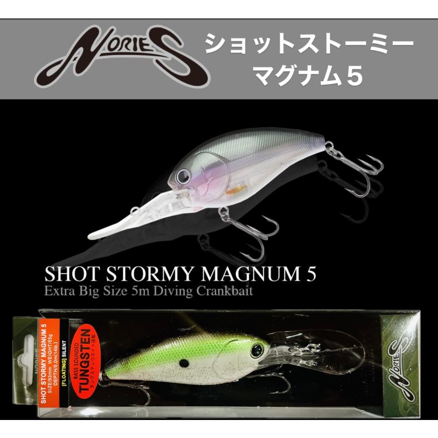 ノリーズの人気クランクシリーズに5mレンジを攻めるクランクベイト「ショットストーミーマグナム5」が追加!SKTマグナムやイヴォーク4.0よりも深く潜るこのクランク!深いレンジのバスに口を使わせる為にも是非入手してください。